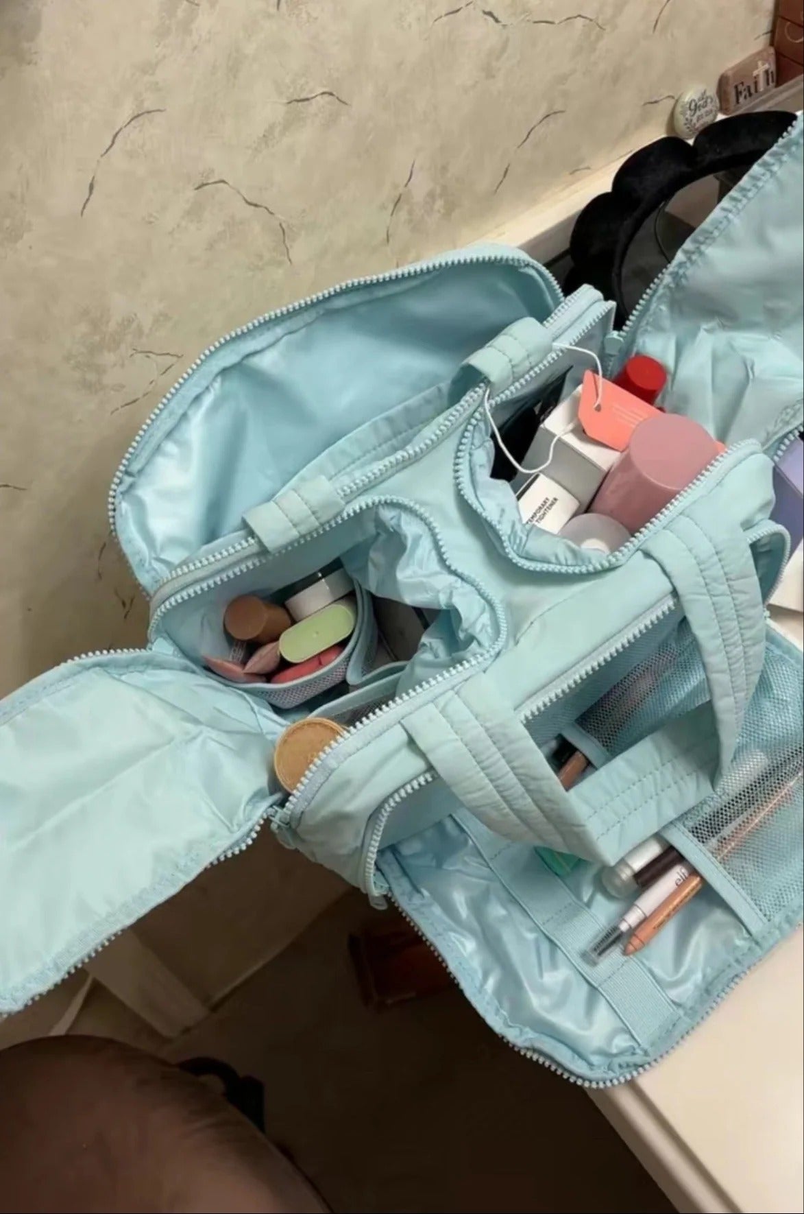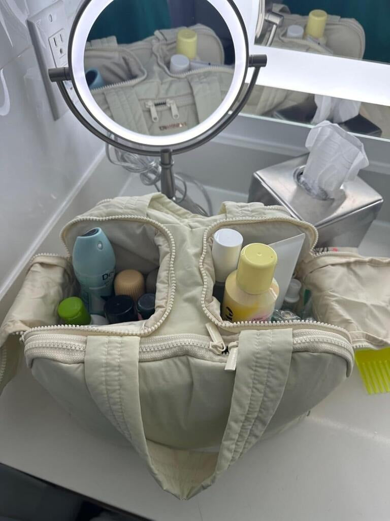 Ja! Durch das große Fassungsvermögen passen auch Full-Size Skincare, Haircare und Beauty-Produkte problemlos hinein. Du musst deine Lieblingsprodukte nicht in kleinere Flaschen umfüllen.